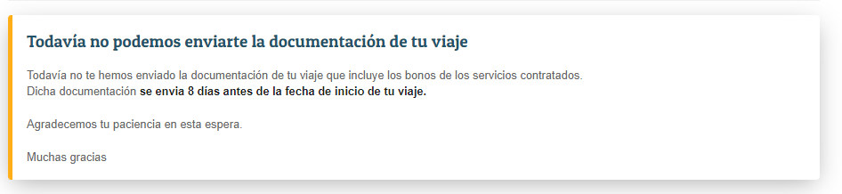 Tenga en cuenta que algunas reservas pueden tardar algo más de este plazo. En este caso verá este mensaje: