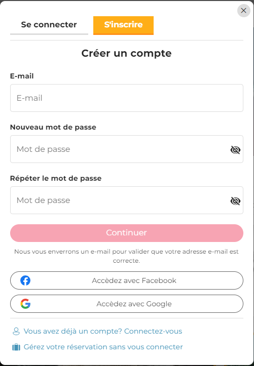 Si vous avez déjà effectué des réservations avec Traventia, nous vous recommandons d'utiliser la même adresse e-mail que vous avez utilisée auparavant. Ainsi, vos réservations précédentes seront automatiquement liées, et vous pourrez consulter les détails tels que la destination, le prix, les dates, etc.