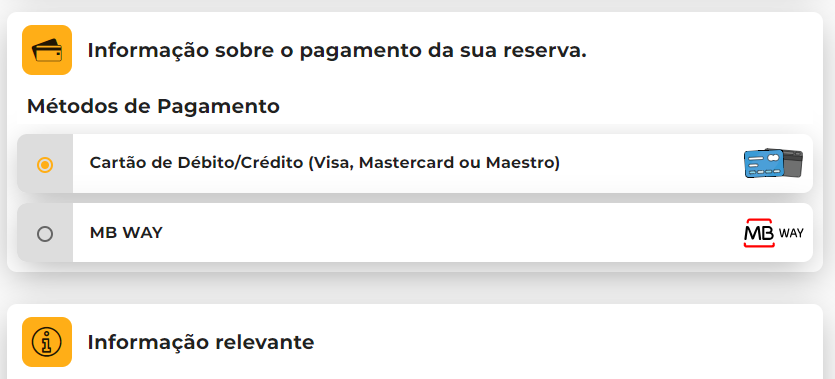 Se alguma destas condições se cumprem, no processo de confirmação da sua reserva (Condições de pagamento), poderá selecionar "Pague apenas 10.00€ (o restante valor segundo o calendário de pagamentos).